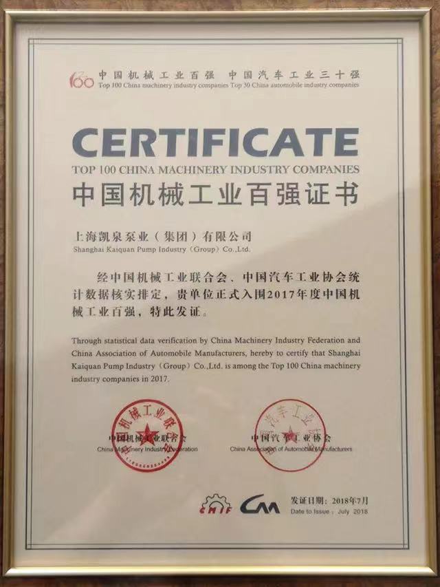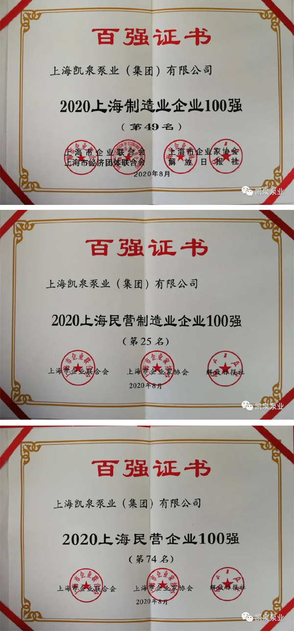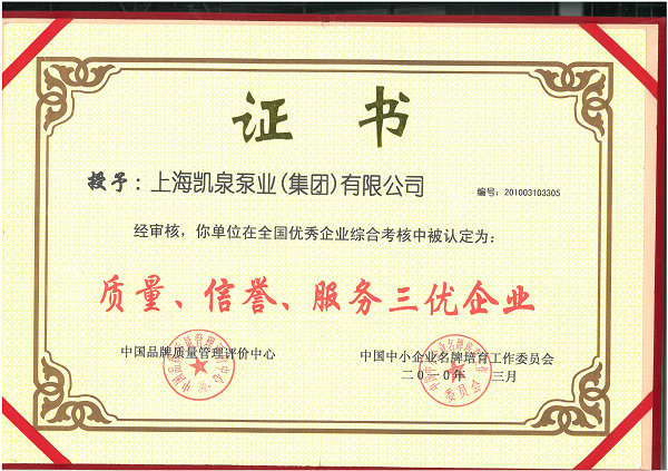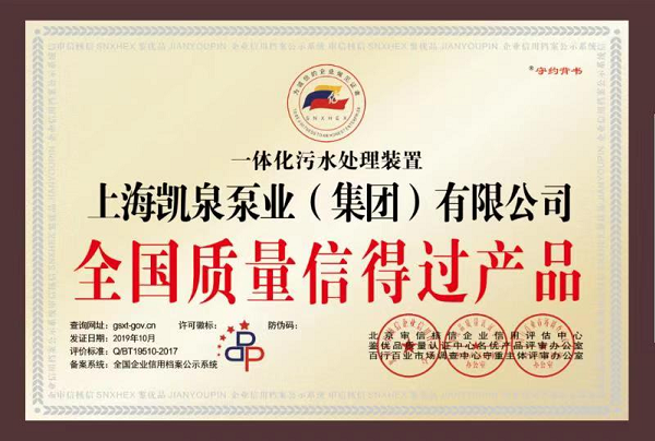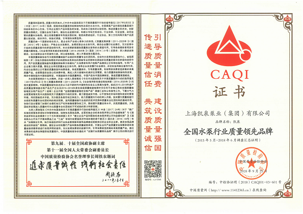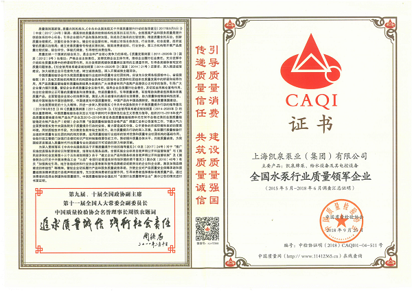 凯泉品牌被评为“全国水泵行业质量领先品牌”