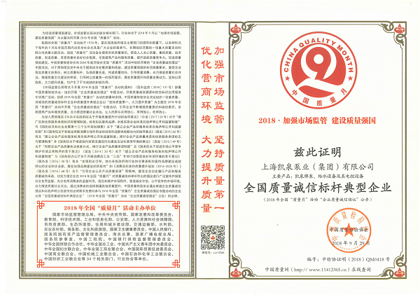 集团被评为“全国水泵行业质量领军企业”
