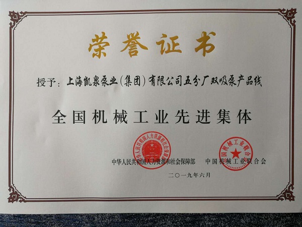 集团双吸泵产品线被评为“全国机械工业先进集体”