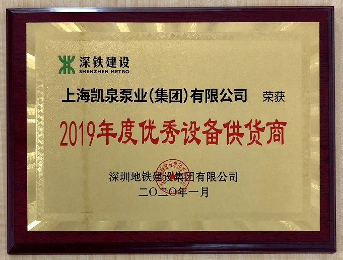 集团荣获“2019年度深圳地铁设备优秀供应商”