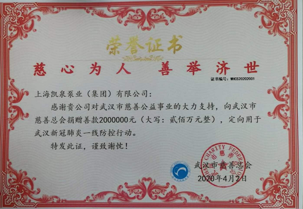 上海凯泉泵业有限公司向玉树地震灾区捐款50万元