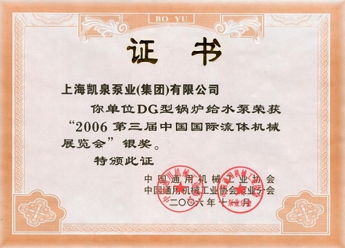 第三届中国国际液体机械展览会银奖213