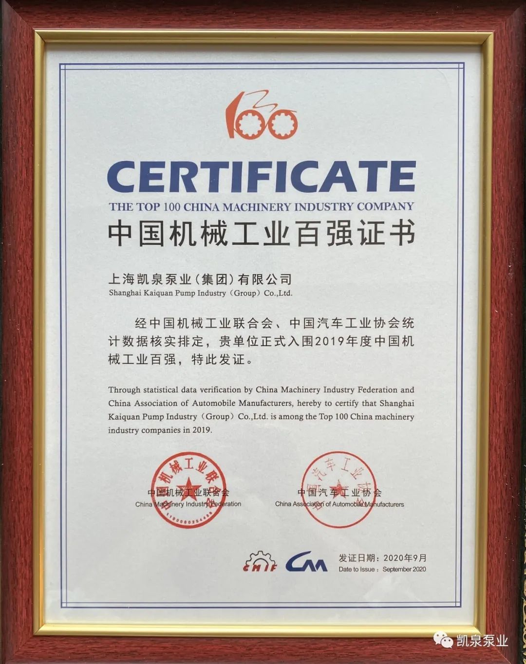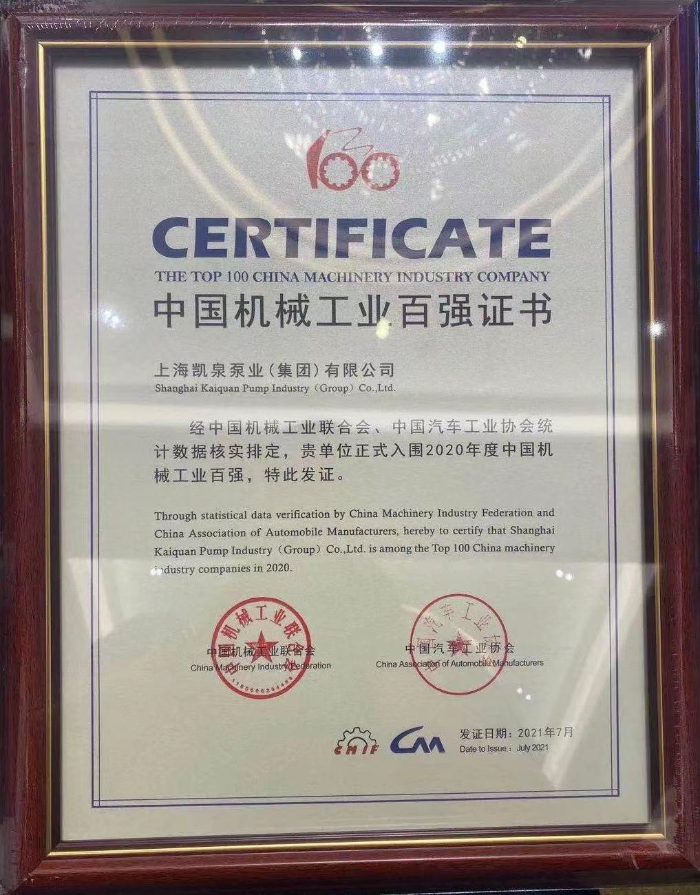 集团荣登2020年中国机械工业百强企业榜单