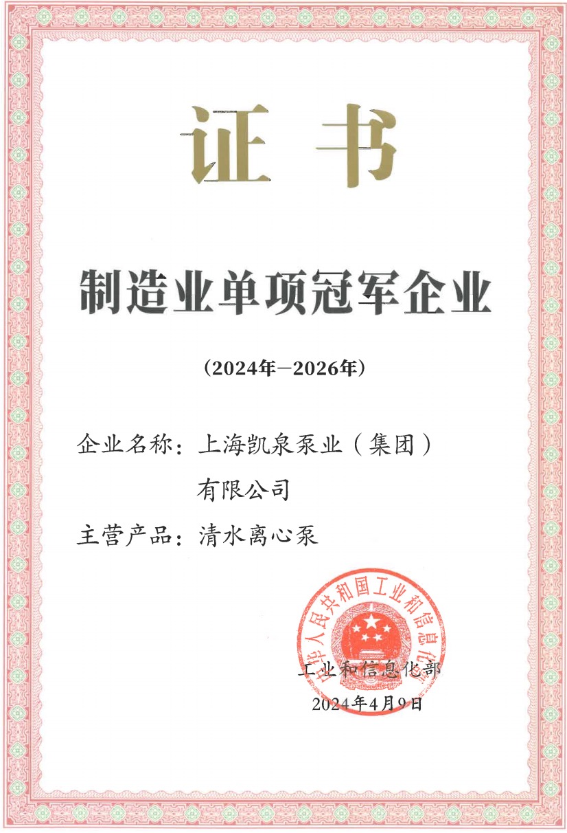 集团荣获国家级制造业单项冠军企业(清水离心泵)