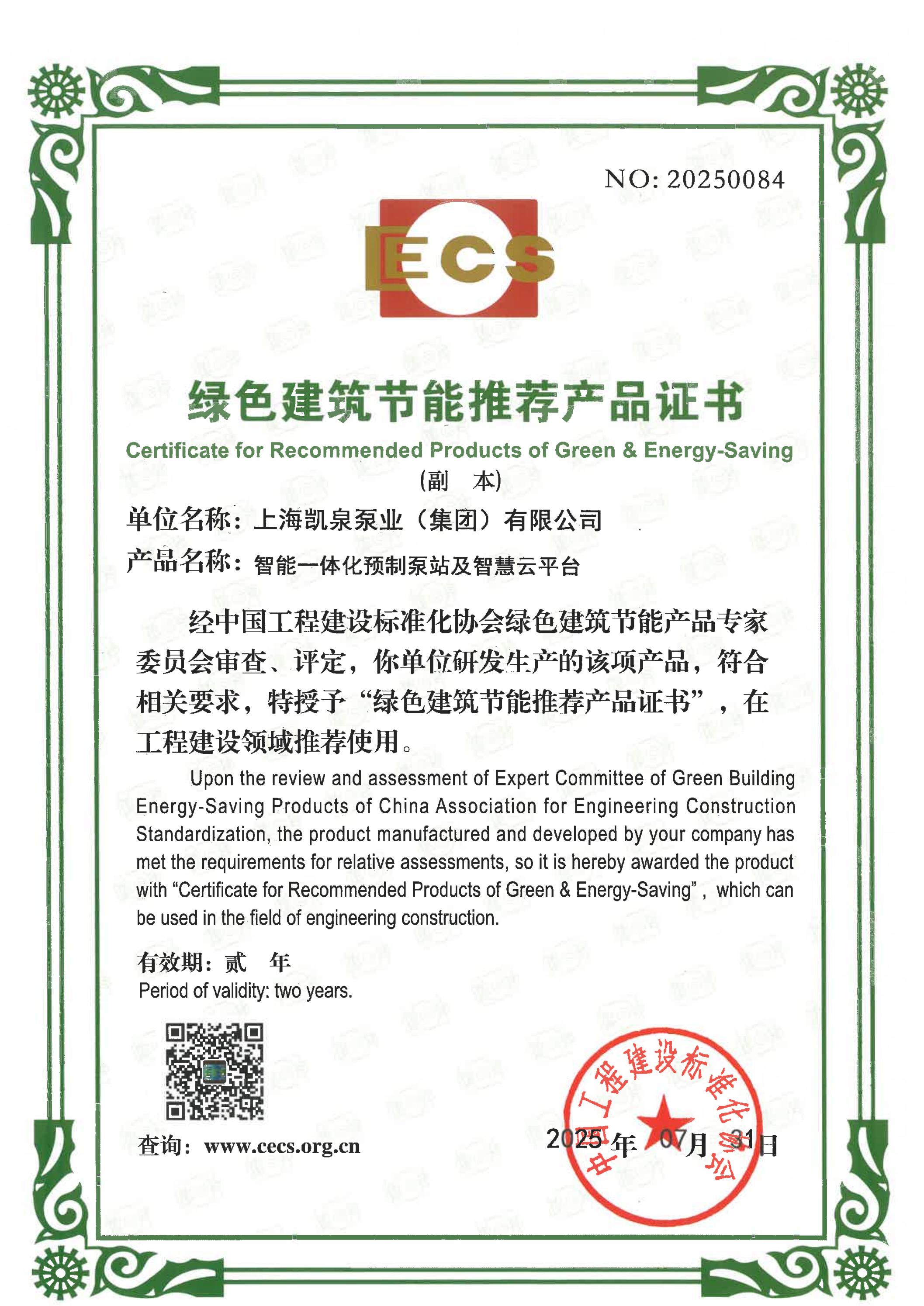 集团荣获绿色建筑节能推荐产品证书