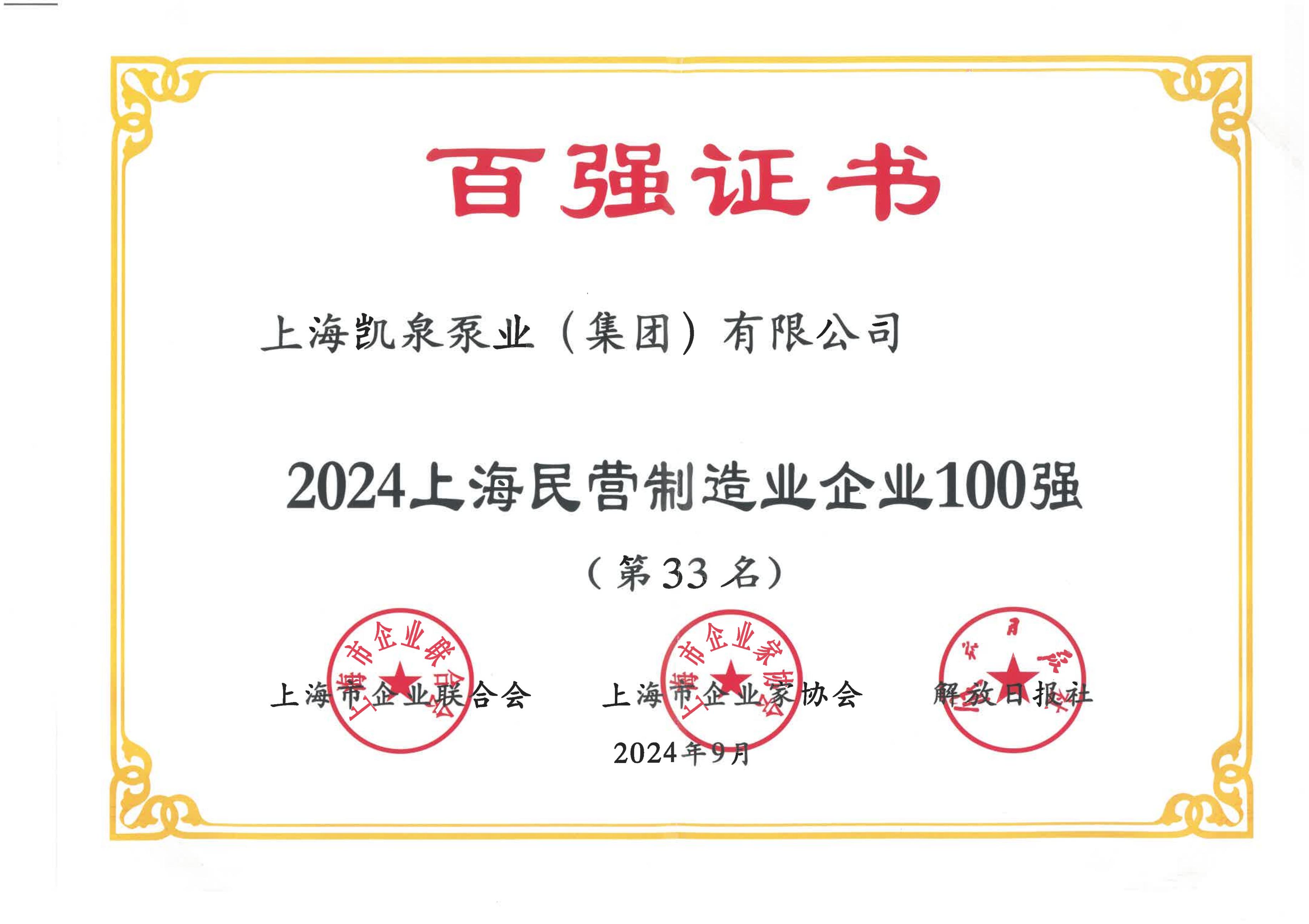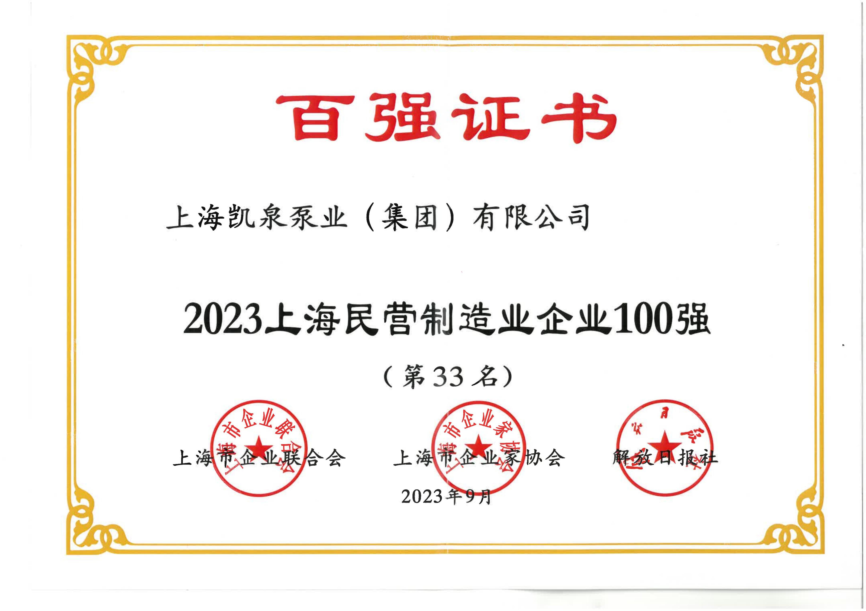 上海民营制造业企业100强(第33名)