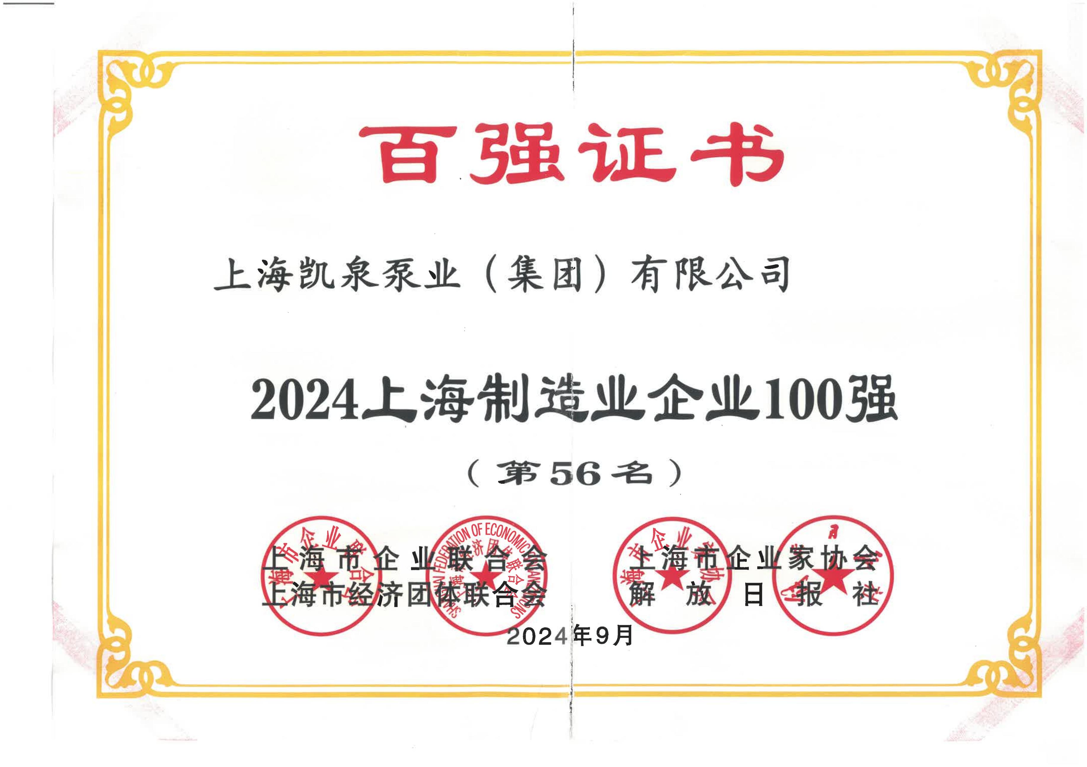上海制造企业100强(第56名)